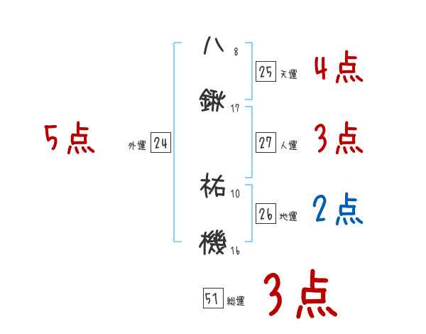 八鍬祐機さんの画数の鑑定結果