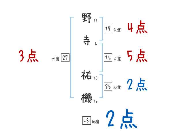 家系が持つ宿命的な運勢を表します。祖先から受け継いだ苗字ですので自分の力が及びません。家柄を象徴します。