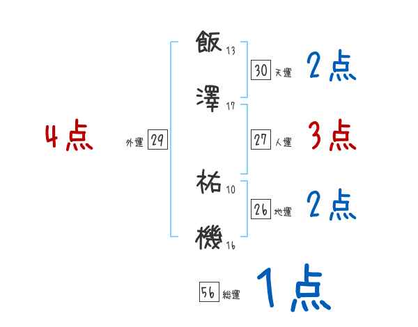 飯澤祐機さんの画数の鑑定結果