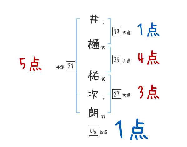 外運![]() | 井樋祐次朗さんの外運は21画の5つ星!統率力がある。独立し成功する。名誉を手に入れる。 生活面を象徴する運勢です。外部から受ける影響力を表し、結婚運、家庭運や職場、環境への順応性を表します。 |