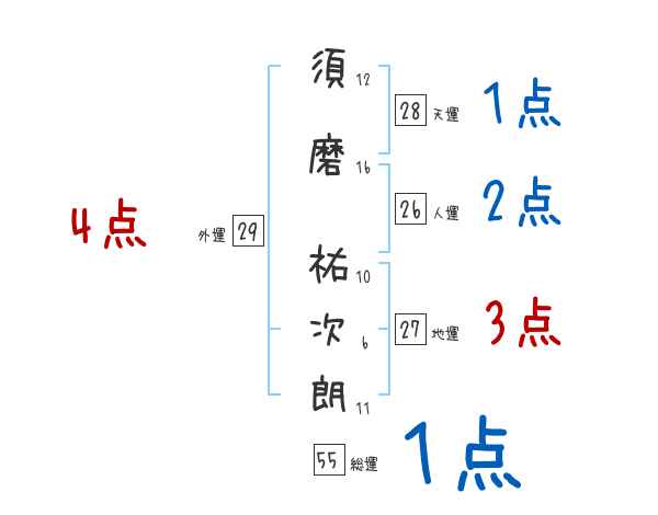 須磨祐次朗さんの画数の鑑定結果