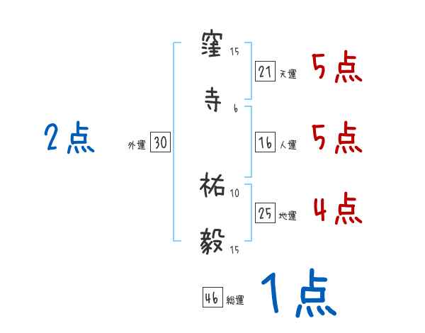 人運![]() | 窪寺祐毅さんの人運は16画の5つ星!人望が厚く大きく発展する。逆転成功が見える。 性格や才能などを表す2番目に重要な運勢です。人間関係や協調性、社会的な成功に影響します。主に20歳から50歳ぐらいまでの中年期の運勢を表します。 |