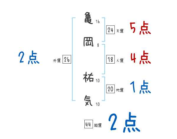 亀岡祐気さんの画数の鑑定結果