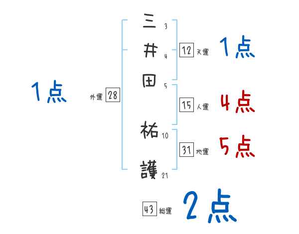 外運![]() | 三井田祐護さんの外運は28画の1つ星!家庭環境に注意。スポーツで活躍できる能力があるかも。 生活面を象徴する運勢です。外部から受ける影響力を表し、結婚運、家庭運や職場、環境への順応性を表します。 |