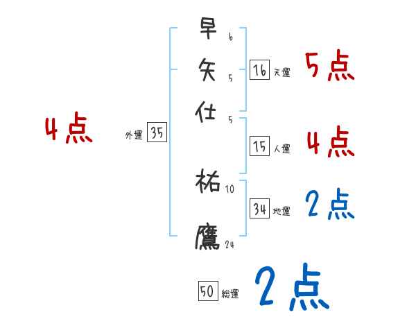 早矢仕祐鷹さんの画数の鑑定結果
