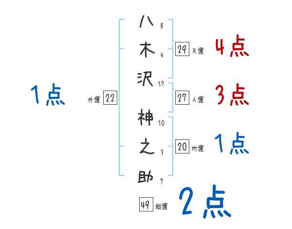 八木沢神之助さんの画数の鑑定結果