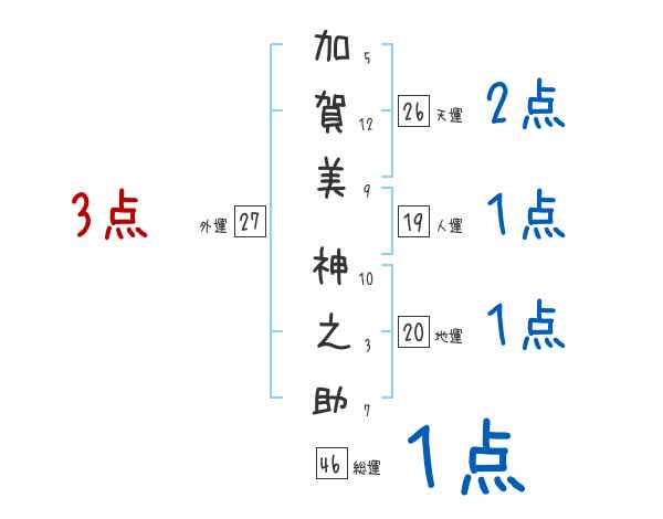 天運![]() | 加賀美神之助さんの天運は26画の2つ星!波瀾万丈かも。信頼できる人を大事にしましょう。 家系が持つ宿命的な運勢を表します。祖先から受け継いだ苗字ですので自分の力が及びません。家柄を象徴します。 |