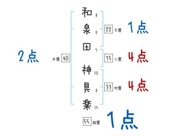 和泉田神具楽さんの画数の鑑定結果