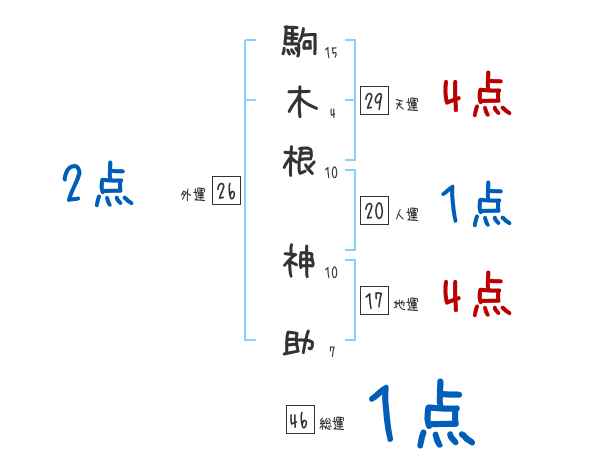 駒木根神助さんの画数の鑑定結果