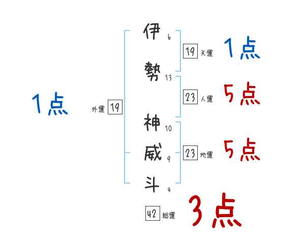 天運![]() | 伊勢神威斗さんの天運は19画の1つ星!優れた才能を持ちますが、協調性が足りないことも。周りの人と協力する事を意識しましょう。 家系が持つ宿命的な運勢を表します。祖先から受け継いだ苗字ですので自分の力が及びません。家柄を象徴します。 |