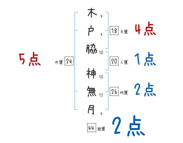 天運![]() | 木戸脇神無月さんの天運は18画の4つ星!情熱的で剛気。忍耐力があり信頼される。 家系が持つ宿命的な運勢を表します。祖先から受け継いだ苗字ですので自分の力が及びません。家柄を象徴します。 |