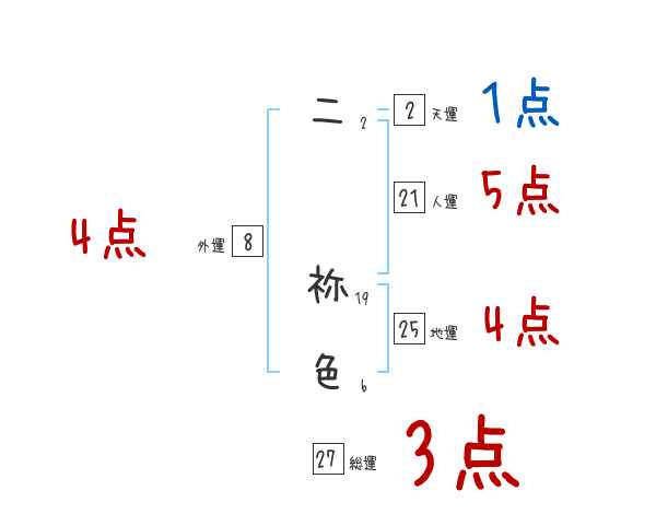 二祢色さんの画数の鑑定結果