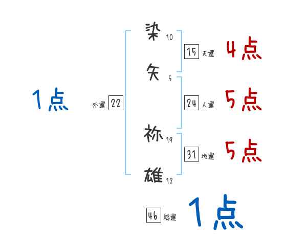 染矢祢雄さんの画数の鑑定結果
