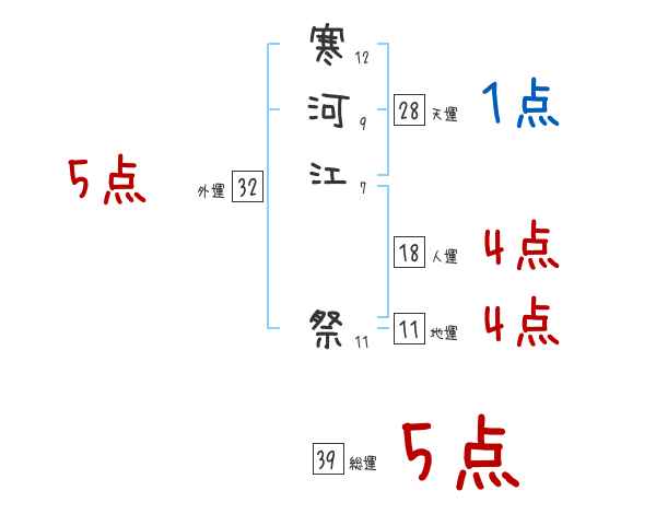 天運![]() | 寒河江祭さんの天運は28画の1つ星!家庭環境に注意。スポーツで活躍できる能力があるかも。 家系が持つ宿命的な運勢を表します。祖先から受け継いだ苗字ですので自分の力が及びません。家柄を象徴します。 |