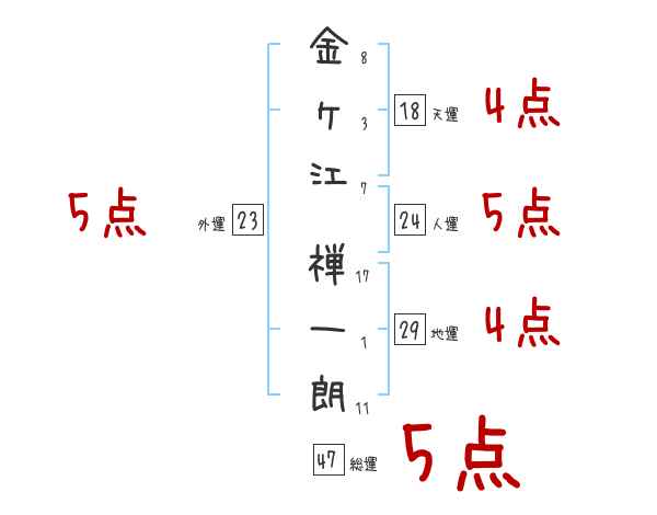 金ヶ江禅一朗さんの画数の鑑定結果