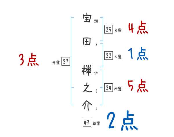 宝田禅之介さんの画数の鑑定結果
