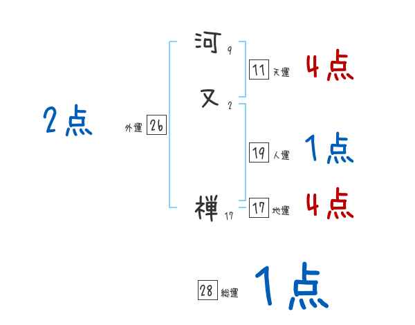 河又禅さんの画数の鑑定結果