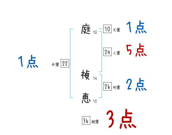 外運![]() | 庭禎恵さんの外運は22画の1つ星!努力することが苦手ないっぽう手先が器用。芸術性にも優れる。 生活面を象徴する運勢です。外部から受ける影響力を表し、結婚運、家庭運や職場、環境への順応性を表します。 |