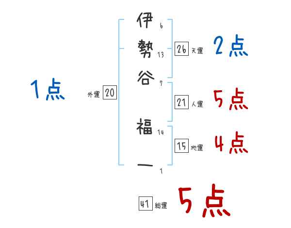 伊勢谷福一さんの画数の鑑定結果
