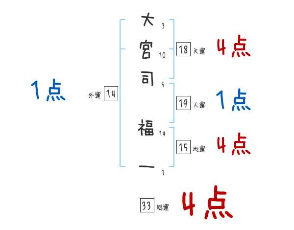 大宮司福一さんの画数の鑑定結果