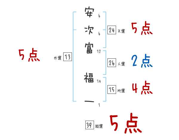 安次富福一さんの画数の鑑定結果