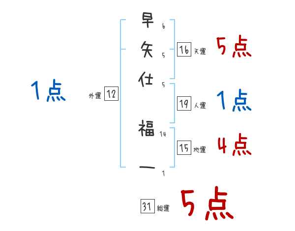 天運![]() | 早矢仕福一さんの天運は16画の5つ星!人望が厚く大きく発展する。逆転成功が見える。 家系が持つ宿命的な運勢を表します。祖先から受け継いだ苗字ですので自分の力が及びません。家柄を象徴します。 |
