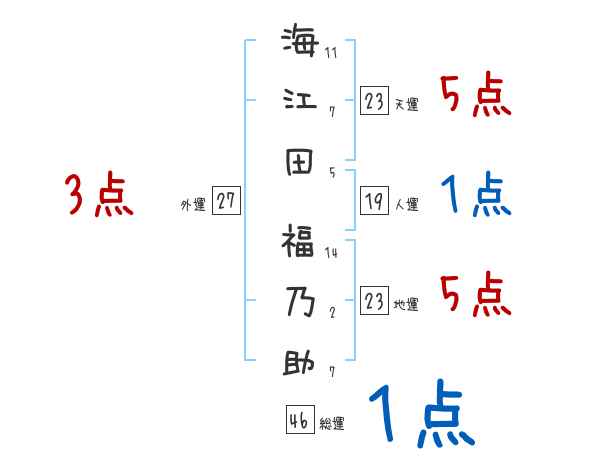 海江田福乃助さんの画数の鑑定結果