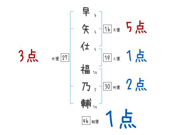 天運![]() | 早矢仕福乃輔さんの天運は16画の5つ星!人望が厚く大きく発展する。逆転成功が見える。 家系が持つ宿命的な運勢を表します。祖先から受け継いだ苗字ですので自分の力が及びません。家柄を象徴します。 |