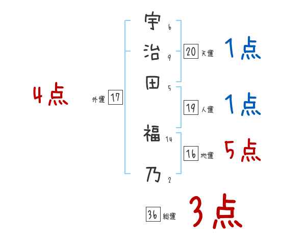 宇治田福乃さんの画数の鑑定結果