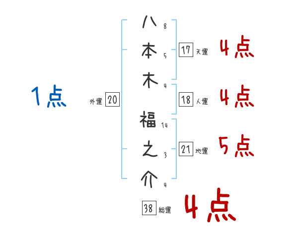 天運![]() | 八本木福之介さんの天運は17画の4つ星!積極的な行動力。地位を気づき財産を手に入れる。純粋な心と直感力。 家系が持つ宿命的な運勢を表します。祖先から受け継いだ苗字ですので自分の力が及びません。家柄を象徴します。 |