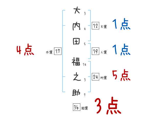 総運![]() | 大内田福之助さんの総運は36画の3つ星!先見性が豊かです。多少神経質で苦労することも。 あなたの人生を表す1番重要な運勢です。生涯を通じて影響する総合運となり、主に50歳以降の晩年期に影響を及ぼします。 |