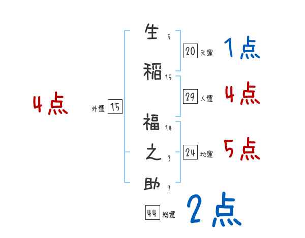 生稲福之助さんの画数の鑑定結果