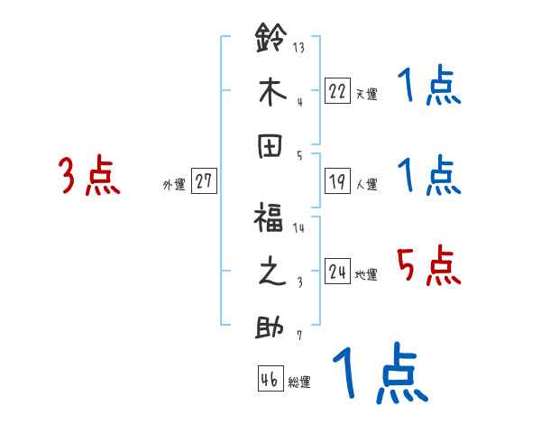 天運![]() | 鈴木田福之助さんの天運は22画の1つ星!努力することが苦手ないっぽう手先が器用。芸術性にも優れる。 家系が持つ宿命的な運勢を表します。祖先から受け継いだ苗字ですので自分の力が及びません。家柄を象徴します。 |