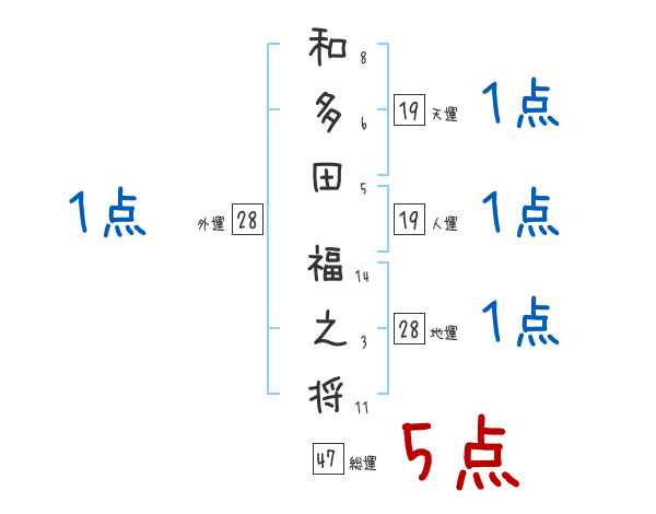 和多田福之将さんの画数の鑑定結果
