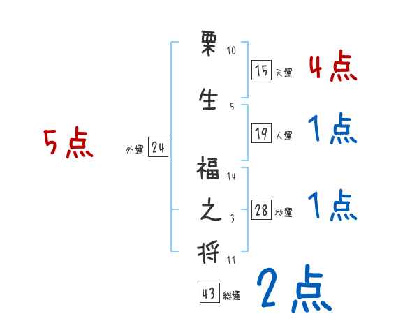 栗生福之将さんの画数の鑑定結果