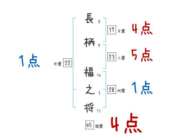 長柄福之将さんの画数の鑑定結果