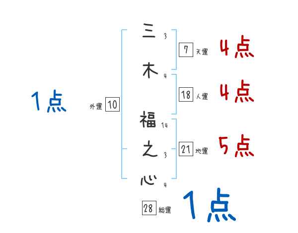天運![]() | 三木福之心さんの天運は7画の4つ星!強い意志や信念を持ち独立心が強い。自立する。 家系が持つ宿命的な運勢を表します。祖先から受け継いだ苗字ですので自分の力が及びません。家柄を象徴します。 |