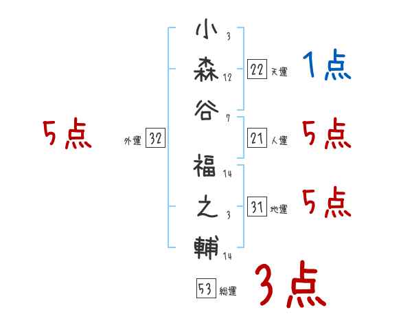 小森谷福之輔さんの画数の鑑定結果