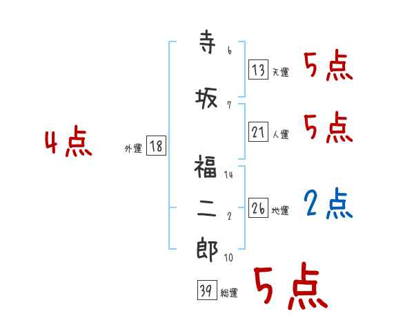 寺坂福二郎さんの画数の鑑定結果