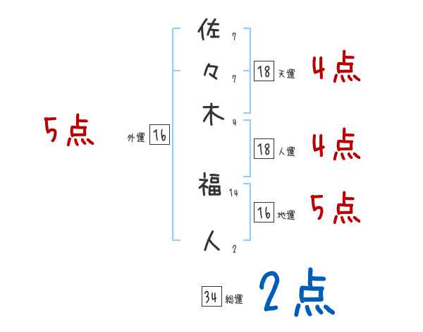 地運![]() | 佐々木福人さんの地運は16画の5つ星!人望が厚く大きく発展する。逆転成功が見える。 個性を表す基礎的な運勢です。性格形成や対人関係、行動力など家庭環境に影響されます。主に誕生してから20歳くらいまでの若年期の運勢を表します。 |