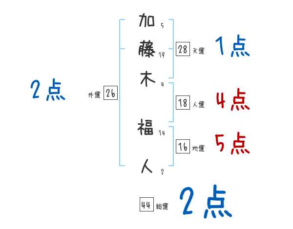 加藤木福人さんの画数の鑑定結果