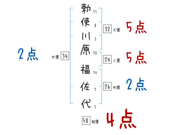 天運![]() | 勅使川原福佐代さんの天運は32画の5つ星!柔軟性があり成功する。チャンスが多く金運が良い。 家系が持つ宿命的な運勢を表します。祖先から受け継いだ苗字ですので自分の力が及びません。家柄を象徴します。 |