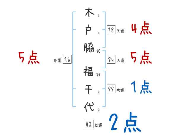 天運![]() | 木戸脇福千代さんの天運は18画の4つ星!情熱的で剛気。忍耐力があり信頼される。 家系が持つ宿命的な運勢を表します。祖先から受け継いだ苗字ですので自分の力が及びません。家柄を象徴します。 |