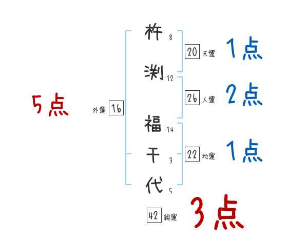 外運![]() | 杵渕福千代さんの外運は16画の5つ星!人望が厚く大きく発展する。逆転成功が見える。 生活面を象徴する運勢です。外部から受ける影響力を表し、結婚運、家庭運や職場、環境への順応性を表します。 |