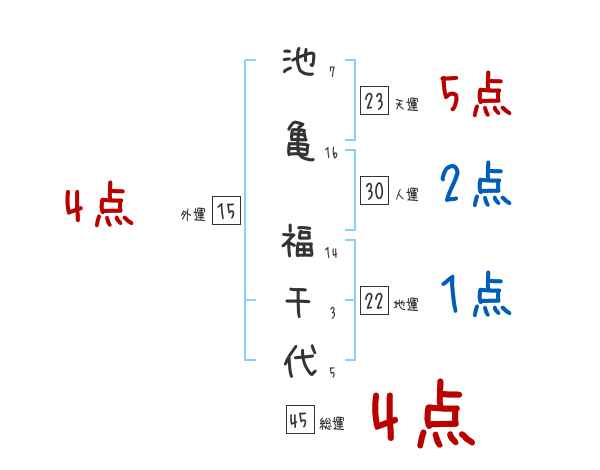 家系が持つ宿命的な運勢を表します。祖先から受け継いだ苗字ですので自分の力が及びません。家柄を象徴します。