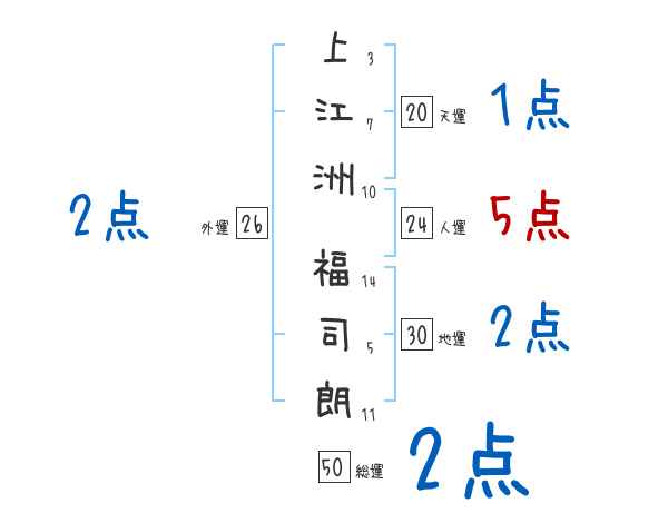 上江洲福司朗さんの画数の鑑定結果