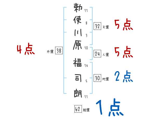 家系が持つ宿命的な運勢を表します。祖先から受け継いだ苗字ですので自分の力が及びません。家柄を象徴します。