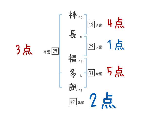 天運![]() | 神長福多朗さんの天運は18画の4つ星!情熱的で剛気。忍耐力があり信頼される。 家系が持つ宿命的な運勢を表します。祖先から受け継いだ苗字ですので自分の力が及びません。家柄を象徴します。 |