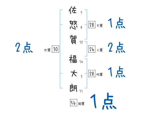 佐怒賀福大朗さんの画数の鑑定結果