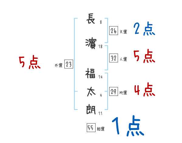 人運![]() | 長濵福太朗さんの人運は32画の5つ星!柔軟性があり成功する。チャンスが多く金運が良い。 性格や才能などを表す2番目に重要な運勢です。人間関係や協調性、社会的な成功に影響します。主に20歳から50歳ぐらいまでの中年期の運勢を表します。 |